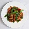 Crispy rice noodles and scallions, onion in brown sauce