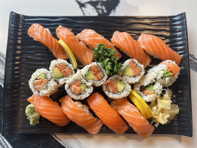 Salmon nigiri (8 pcs), spicy salmon roll
