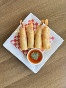 Juicy shrimps wrapped with vermicelli noodles and sweet cabbage fried to golden perfection, and served with sweet & sour sauce for the perfect bite. (NOT GLUTEN FREE)