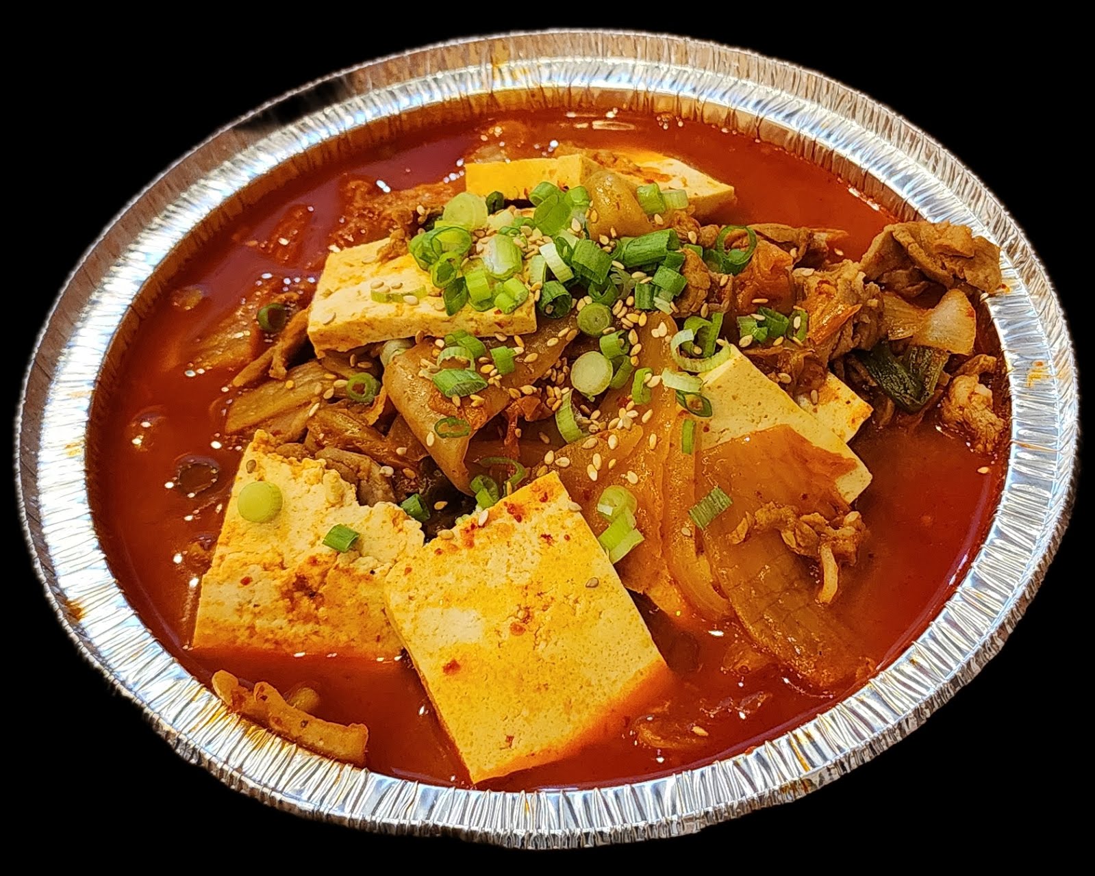 (NEW ITEM) A rich and Spicy Korean Stew simmered with kimchi, pork, soft tofu and vegetables. Served with steamed rice and seaweed.on the side.